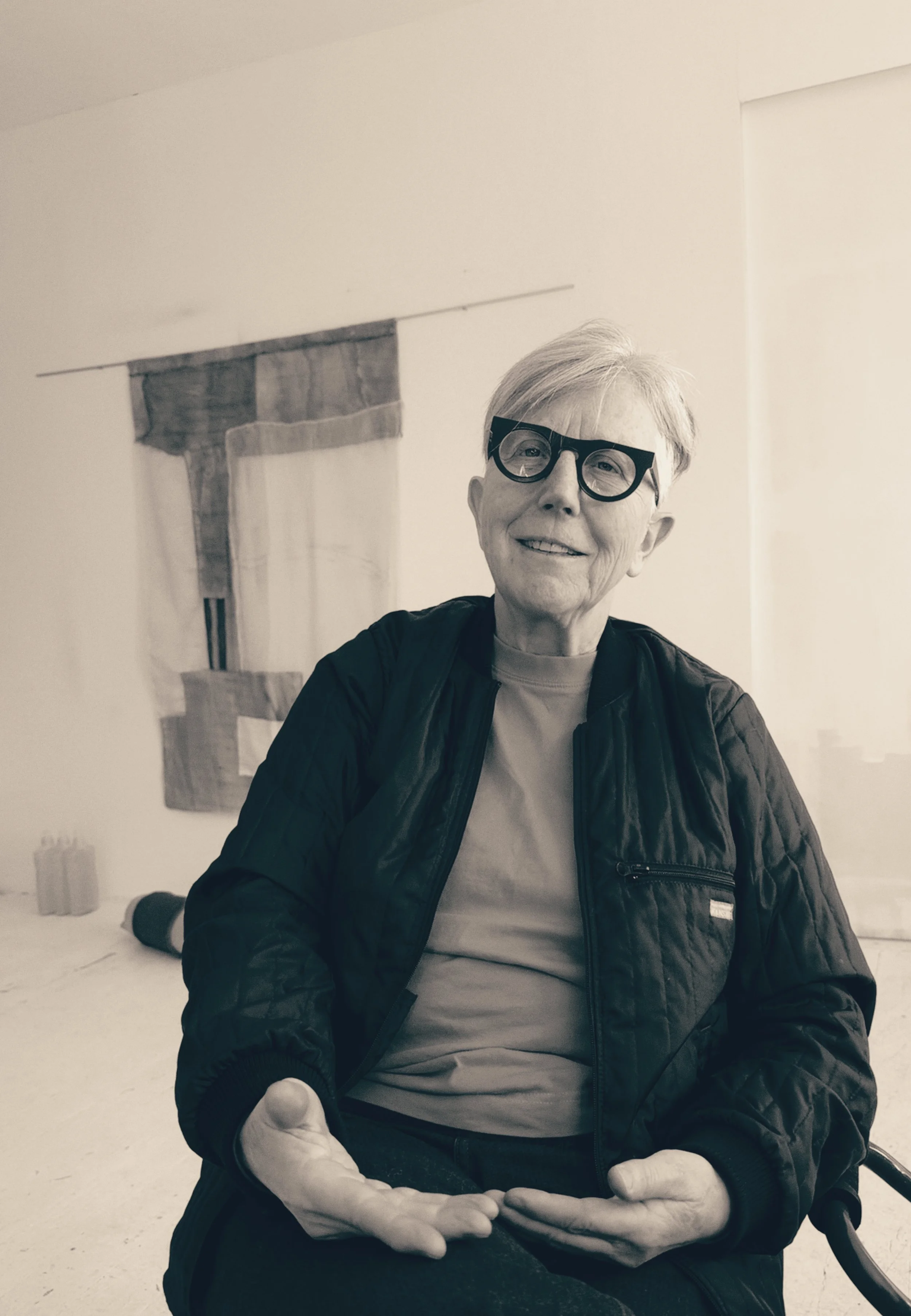 “If I could take only one thing with me to a desert island, it would be my orange clamp,” she says. As if it were a lifeline. As if it were a memory. In Svendsen’s hands nothing is neutral. Transparent plastic cans filled with yellow cleaning liquid, transported all the way from The Hague, a black glasses-cleaning cloth, fished from the pocket and tossed down in front of an artwork in the middle of a conversation about whether the piece is finished. Things carry weight. They carry will.